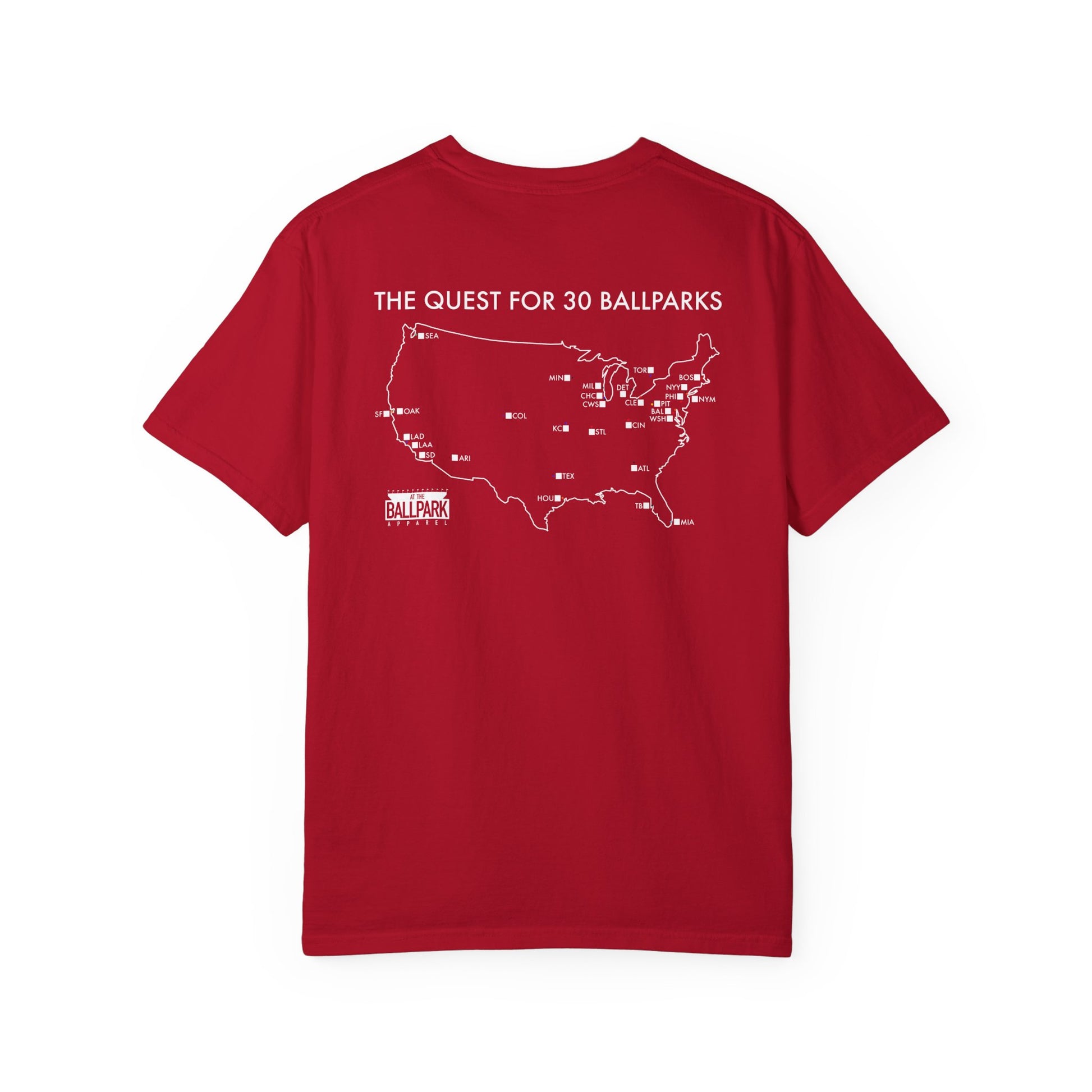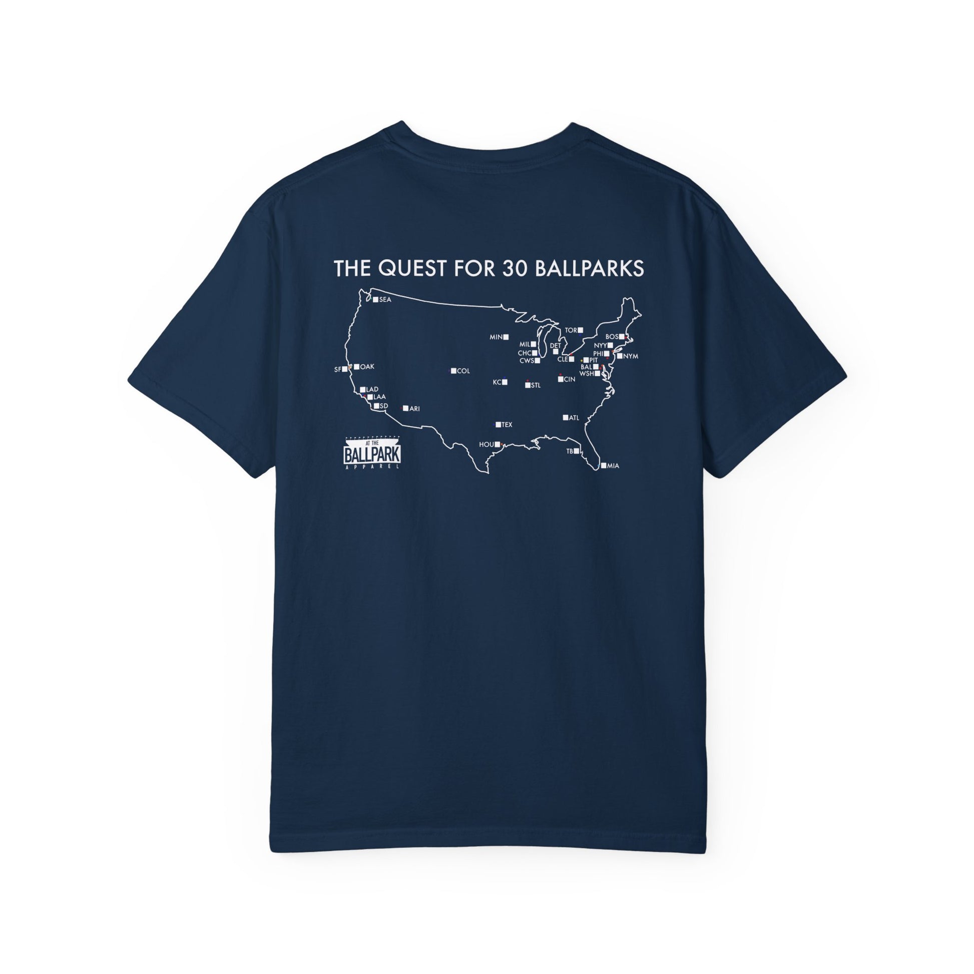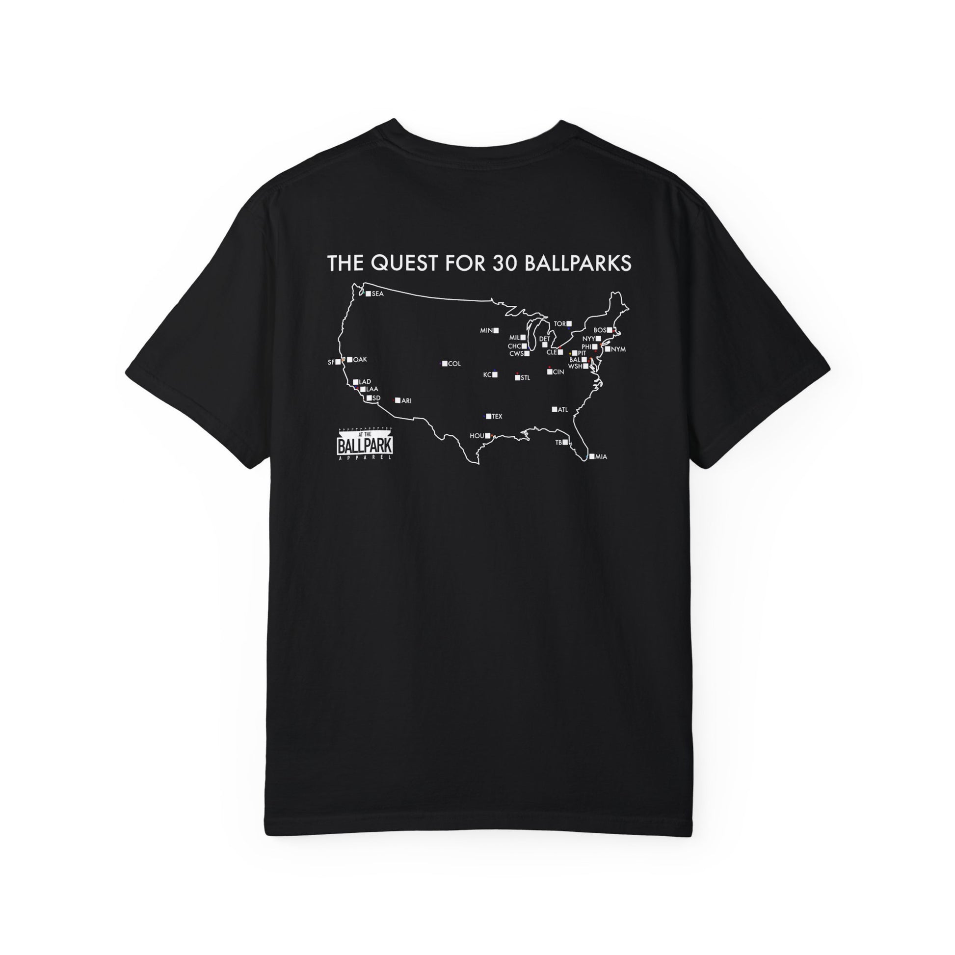 The Quest for 30 Ballparks T-Shirt (Check Off Your Ballpark Progress) | At The Ballpark Apparel